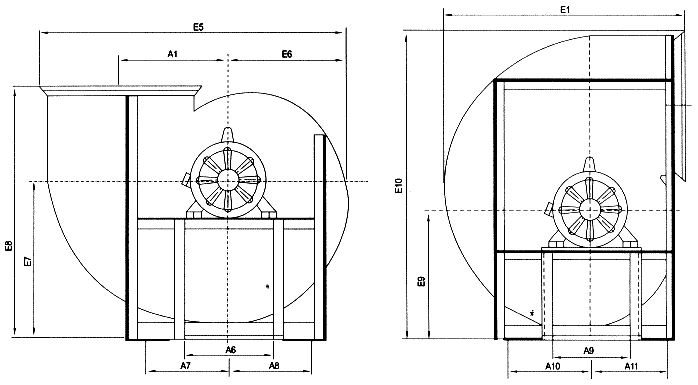 (一)、4-72、4-79系列2.8A-6A離心風機外形圖