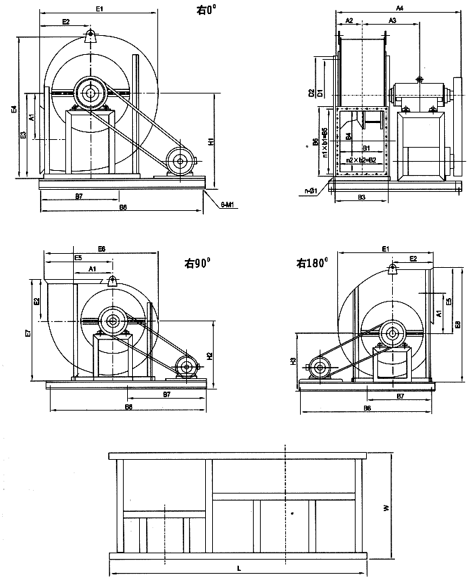 4-72、4-79型離心風機六種傳動方式置示意圖